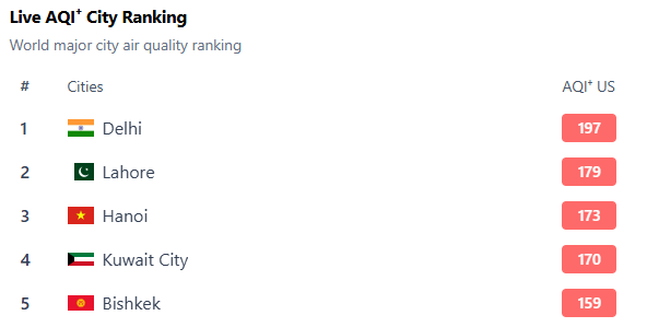 11/17/2025, 18:00As of 17 November 2025, the capital of Kyrgyzstan ranks fifth in the global ranking of the most polluted cities, according to data from the IQAir platform.