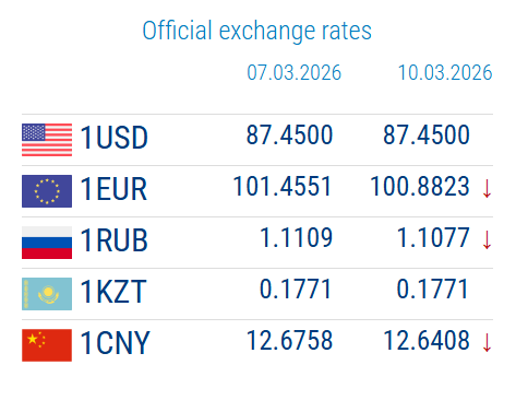 03/09/2026, 16:26The National Bank of Kyrgyzstan updated the official exchange rates of foreign currencies on March 10. Most currencies showed a slight decline against the KGS.