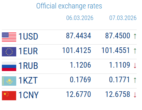 03/06/2026, 16:46According to the National Bank of the Kyrgyz Republic, the official exchange rates for March 7, 2026, changed compared to the previous day.