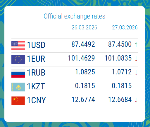03/26/2026, 16:25According to the National Bank of the Kyrgyz Republic, on 27 March the exchange rates of the main currencies showed only slight fluctuations compared with the previous day.