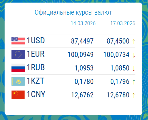 16.03.2026, 16:18По данным Нацбанка КР, с 14 по 17 марта 2026 года курс основных валют показал незначительные колебания.