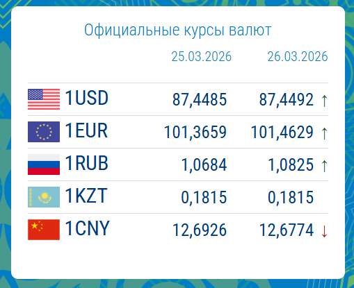 25.03.2026, 16:20По данным Нацбанка КР, 26 марта курс основных валют показал незначительные изменения по сравнению с предыдущим днем.