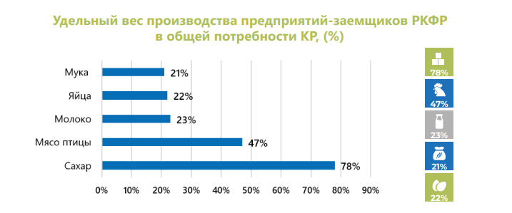 По данным фонда, результатом этой программы стало существенное укрепление внутреннего производства. Сегодня заемщики РКФР обеспечивают 78% годовой потребности страны в сахаре и 47% — в мясе птицы.